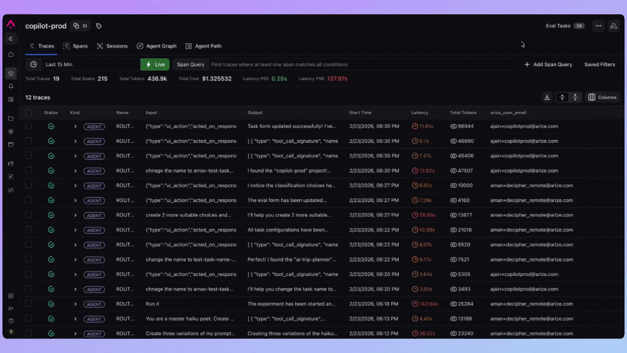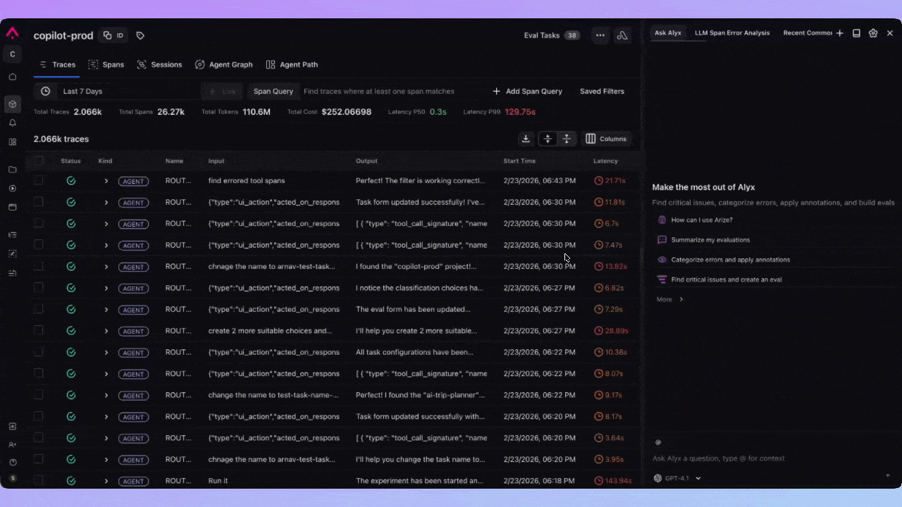 | Search | Build filters or find spans via natural language |