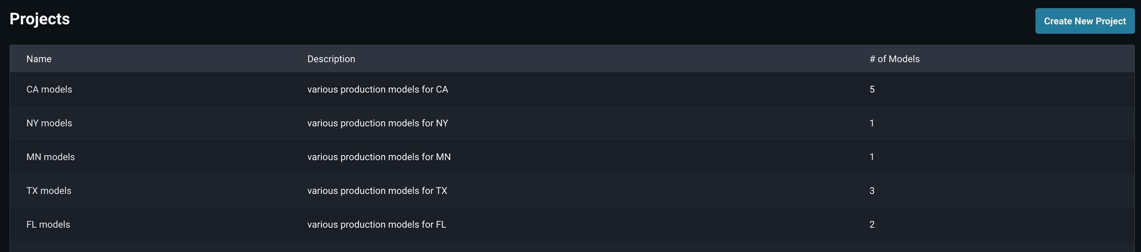 Projects - Organize and Manage your ModelsTired of manually sorting through tons of models to find the one you’re looking for? Want an easy way to organize and compare related models? You’re in luck! Look no further than our new Projects page. We’ve added the ability to group models together for easy navigation and comparative analysis. Some situations where projects are especially useful are when you have a bunch of models serving the same goal, one model instance deployed and for one store, similar models in different locations, or multiple types of users.