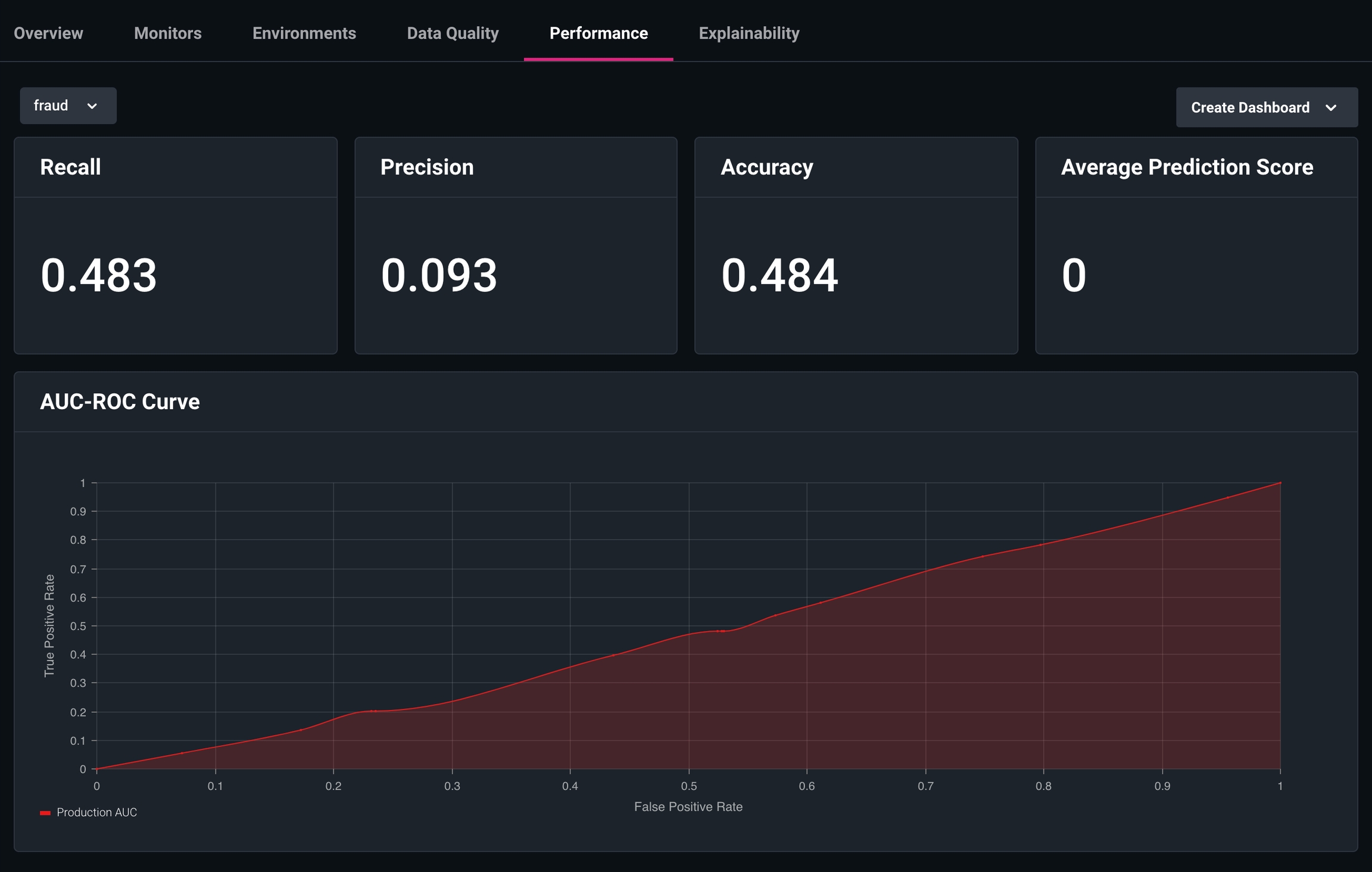 A Performance tab is now available under the Model Page for Score & Regression Model Types. It will come soon for Binary and Multi-Classification Models - stay tuned!This tab surfaces up key performance metrics specific to the model type. For score models, we have dynamic AUC-ROC analysis: