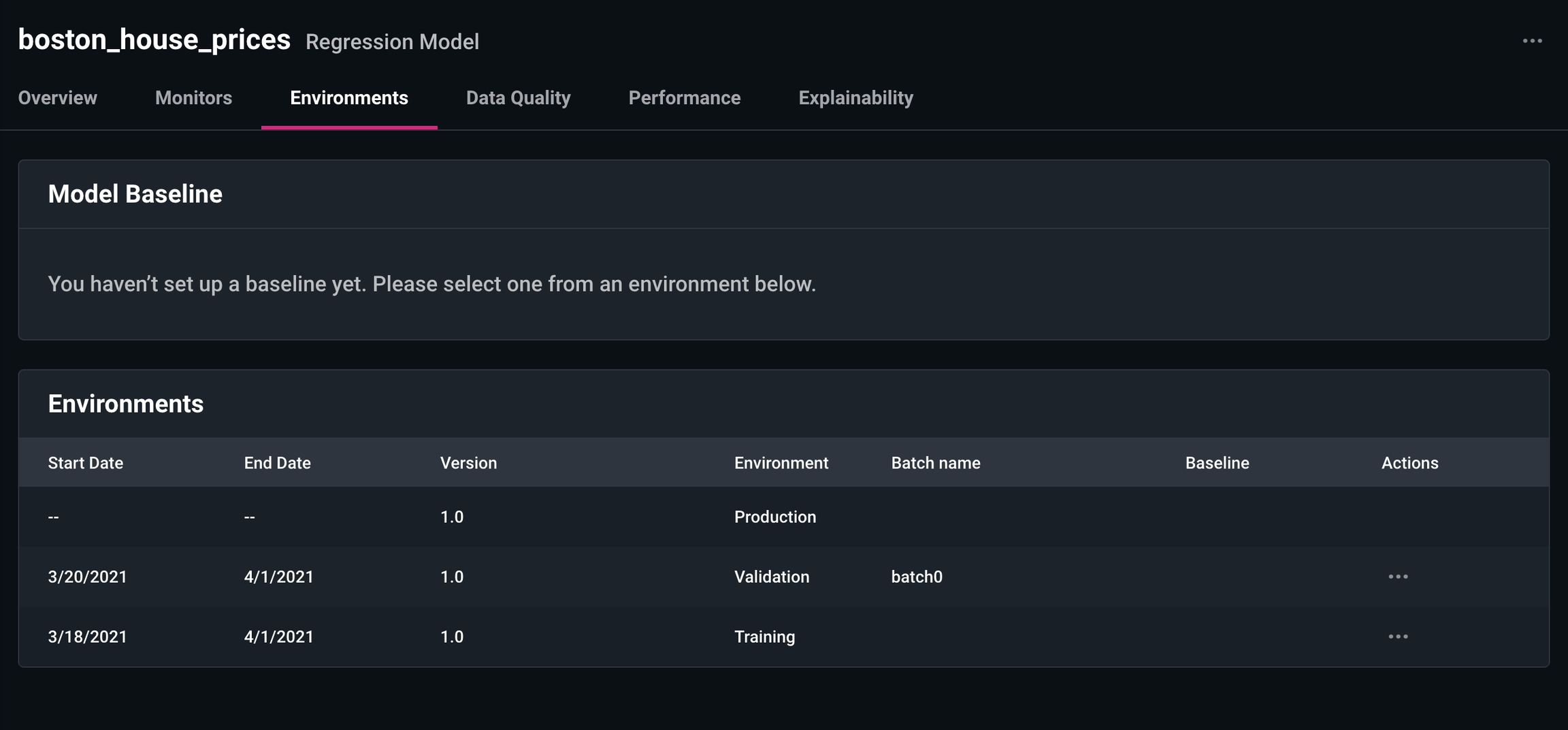 - All of a model’s environments are surfaced in the Model Page under the Environments tab