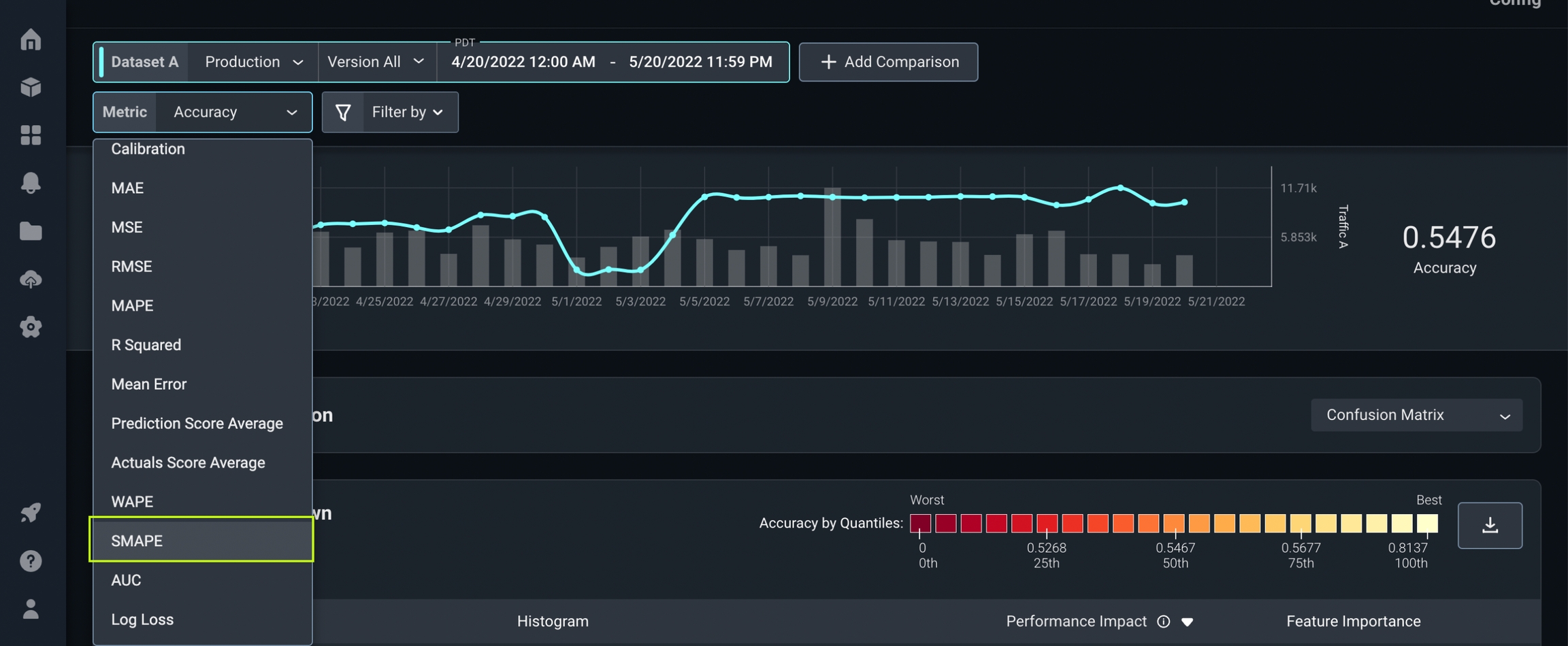 Arize users can now use Symmetric Mean Absolute Percentage Error as an accuracy metric for performance tracing. sMAPE is useful when your model is prone to over forecasting, and the shortcomings of MAPE become prohibitive for evaluating accuracy.Learn how sMAPE is calculated here.