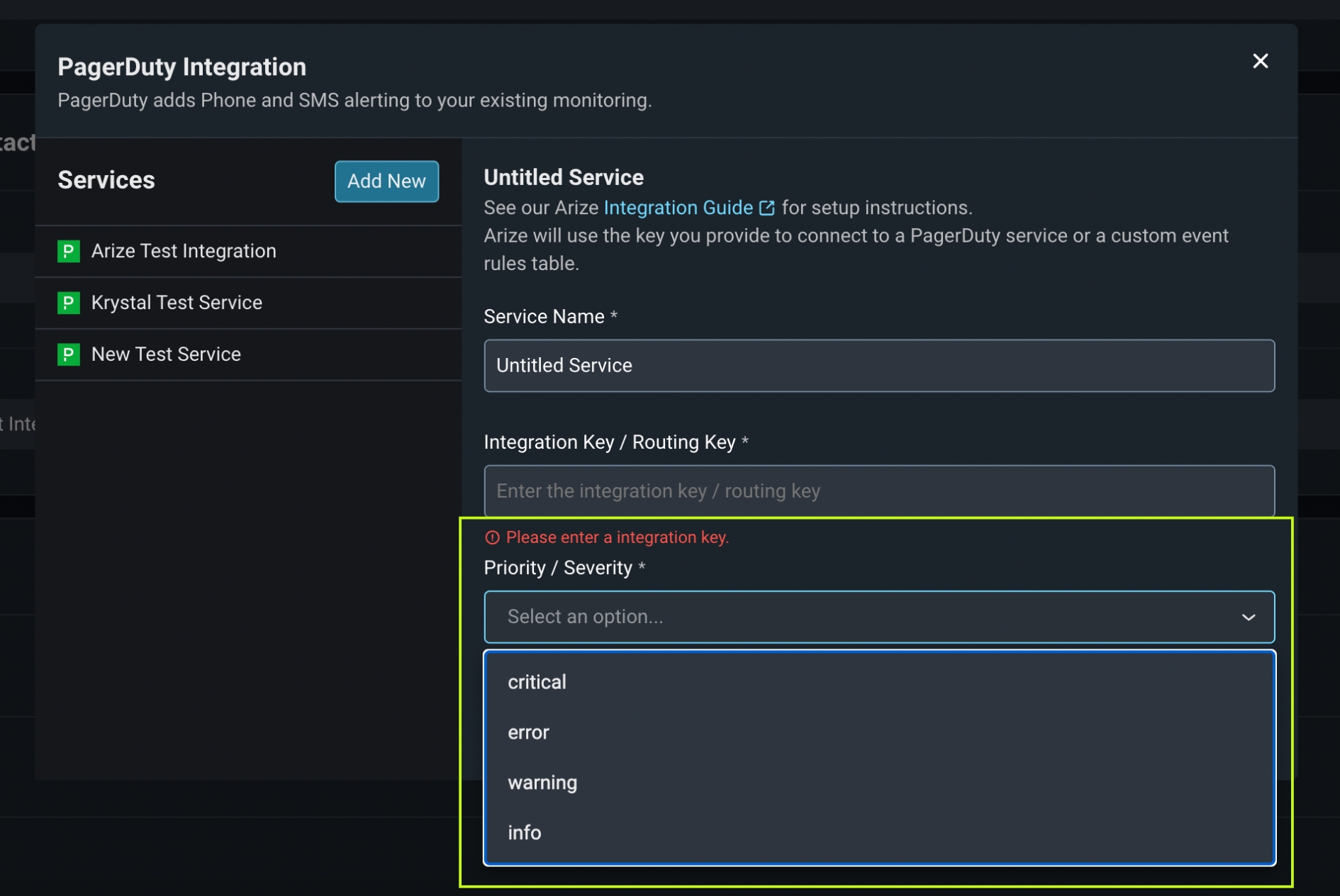 Alerting Integration Setup - Priority/Severity Setting