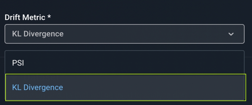 Choose between PSI and KL Divergence when measuring drift. Use KL divergence if you have a distribution with a high variance.Learn more about KL divergence here.