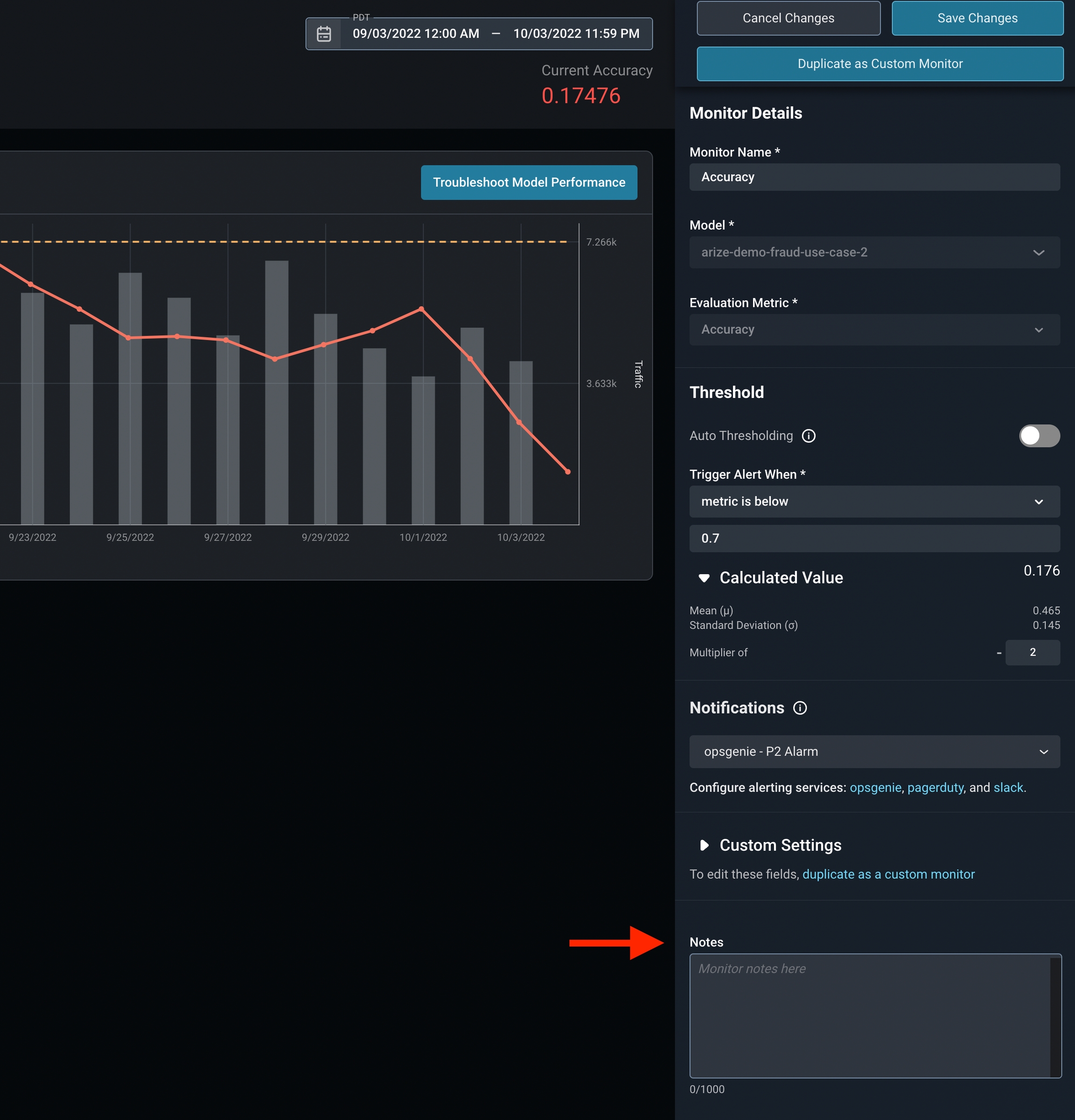 Annotate any monitor for enhanced organization and increased transparency. Use notes to attach an explanation of your monitor’s details, add an alert resolution ledger, link to run-books in the event of an alert, and more.