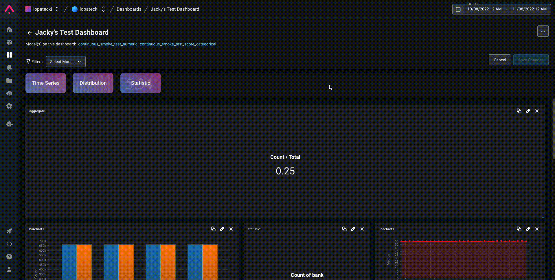 Select any bin within a numeric distribution chart to zoom in for additional granularity when troubleshooting drift. Zoom into drift when the majority of your data is skewed into a few bins. This is available in the model overview drift tab, dimension details drift tab, and drift monitors page.