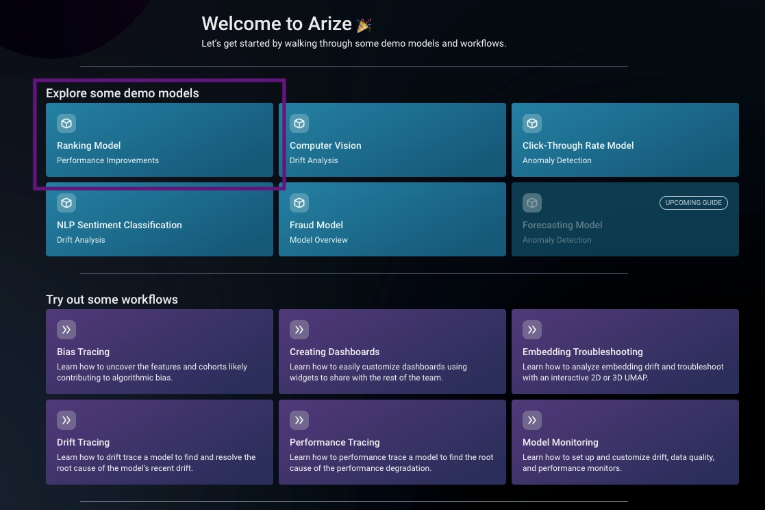 Ranking models are a critical component of recommender systems; native support for ranking models resolves rank-specific model issues easier and improves model outcomes faster.- Data Ingestion: Ingest model inference data across various ranking use cases to easily get started using Arize. Learn how to ingest ranking model data here.
