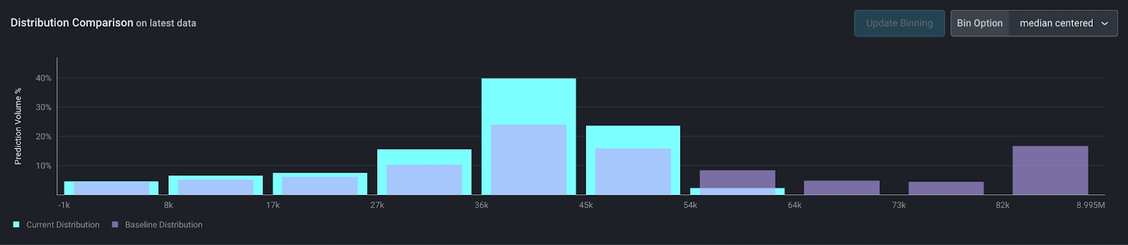 Editable and dynamic distribution comparisons to visualize data and calculate drift metrics (i.e. PSI) with increased flexibility. Change binning options to use across monitors, performance tracing, and the model overview page.Edit the distribution comparison by clicking on ‘View Feature Details’ on the Performance Tracing page. Learn more about best practices here.