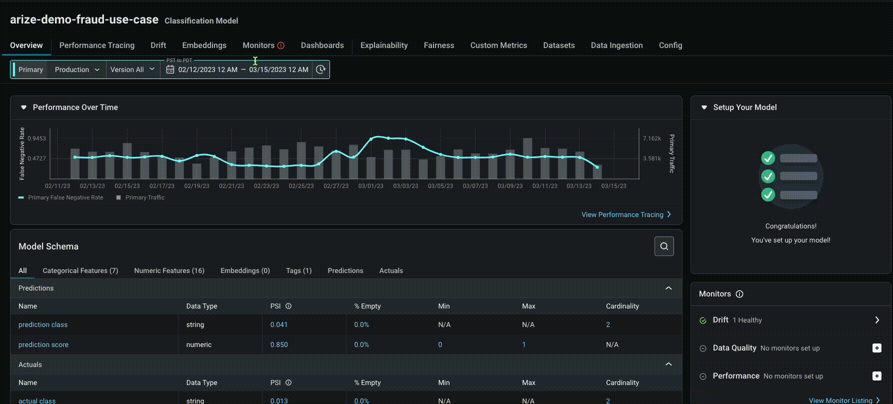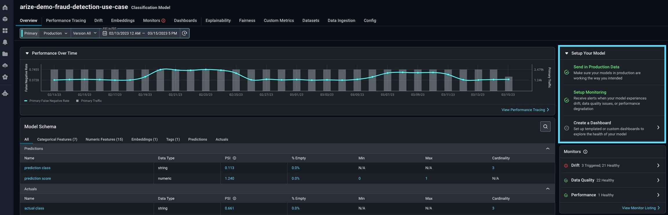 Follow the steps on the onboarding checklist to finish setting up your model in Arize.