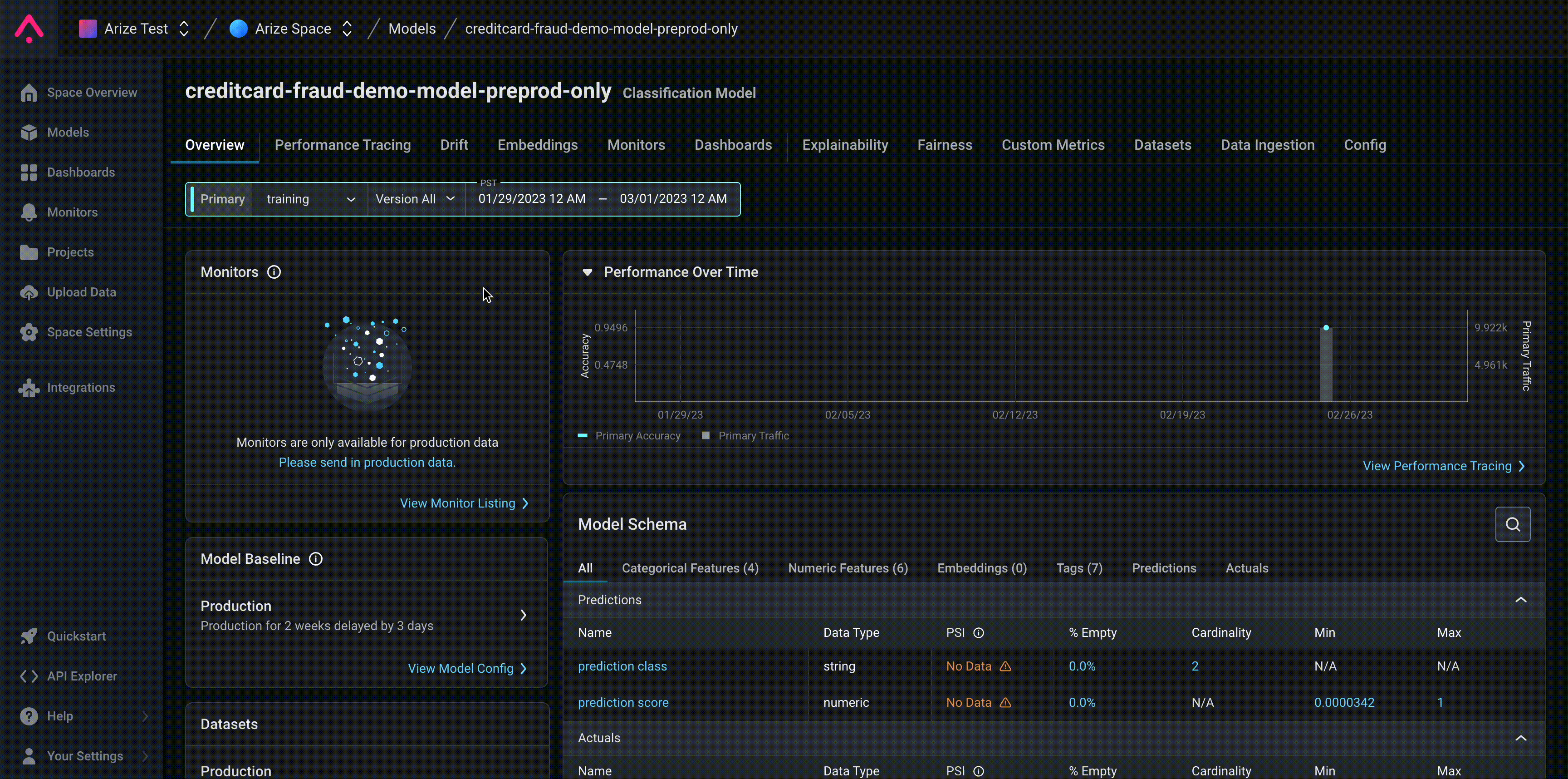 Sync Google BigQuery’s data warehouse with Arize to automatically monitor and analyze new model data. Learn how to configure BigQuery with Arize here.