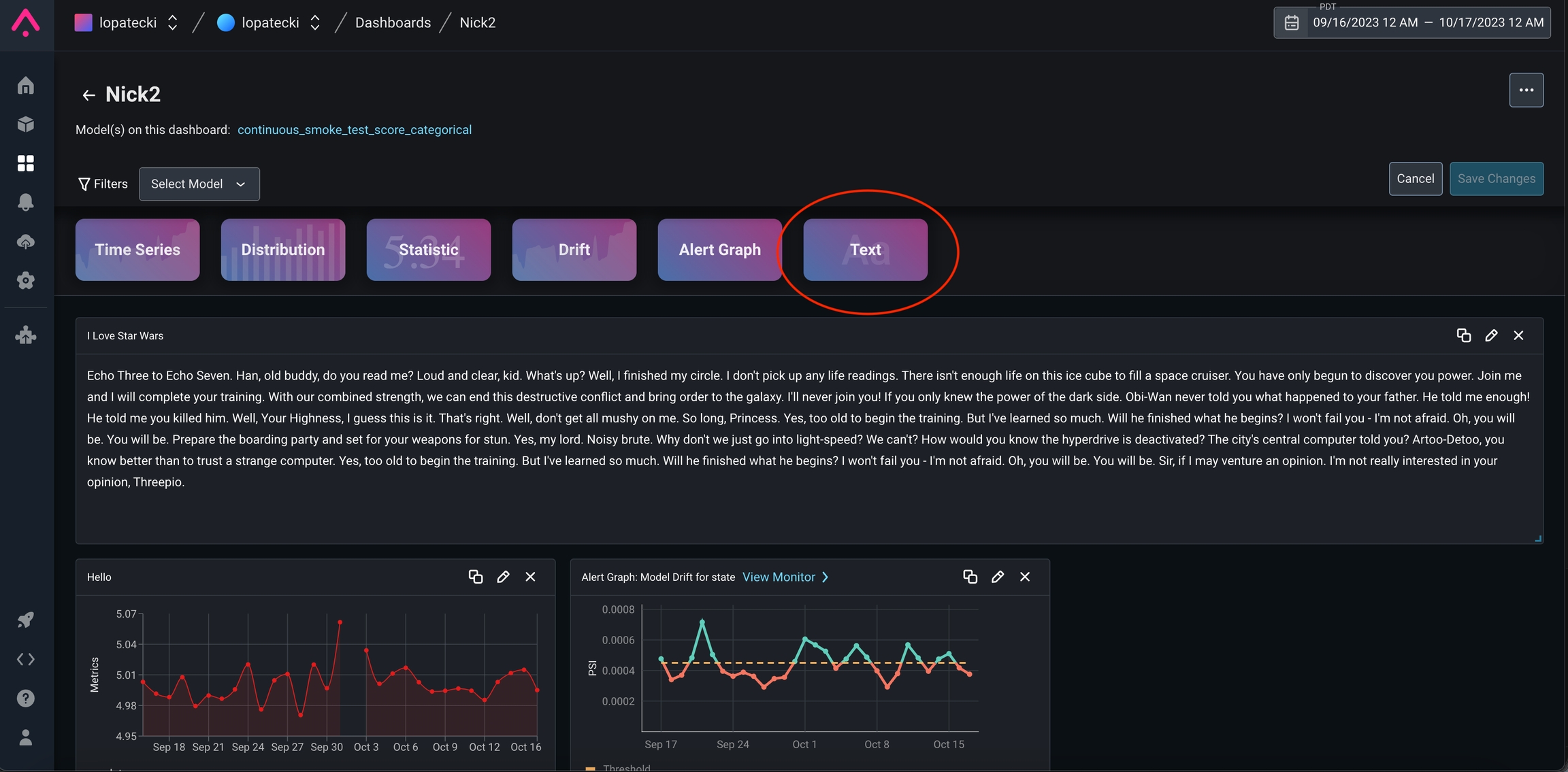 Text Widgets are now included in dashboards. Users can create text widgets to share notes and observations.