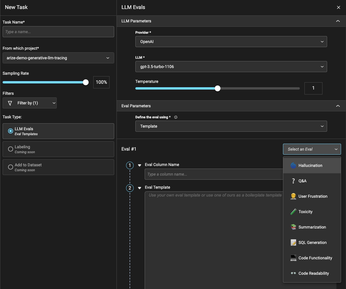 As your application scales and the number of production logs increases, it can be cumbersome to manage manually your data. Tasks let you create and run automated actions on your LLM spans. Users can now set up Tasks to automate actions on data, with Online LLM Evaluations (continuous evals) being the first supported task type. Look out for new Task templates in the coming weeks. Learn more ->