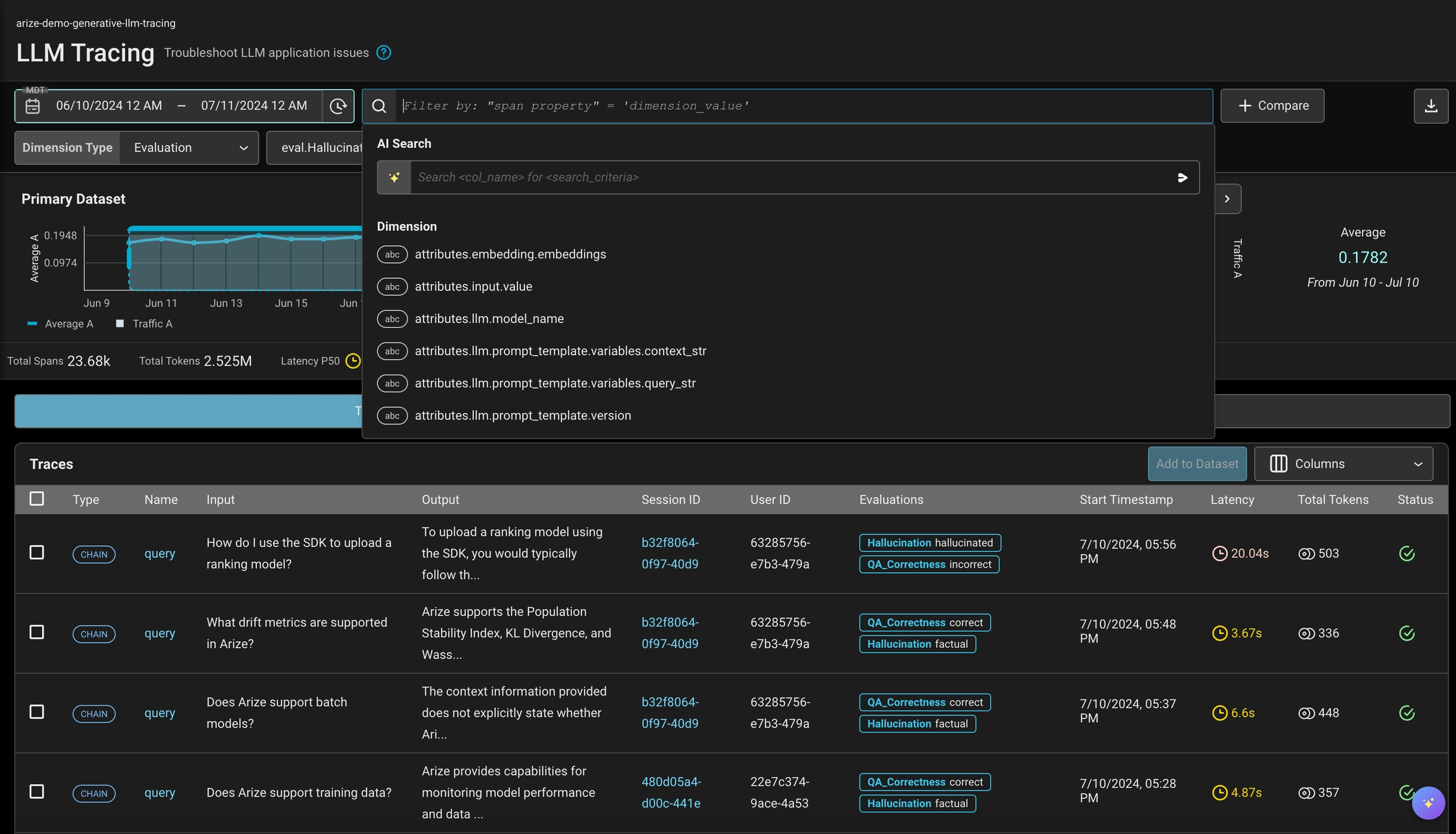 Use token counts to find problematic traces, long running conversations or investigate prompt variable or context overflow. Learn more ->Query Filters in Traces